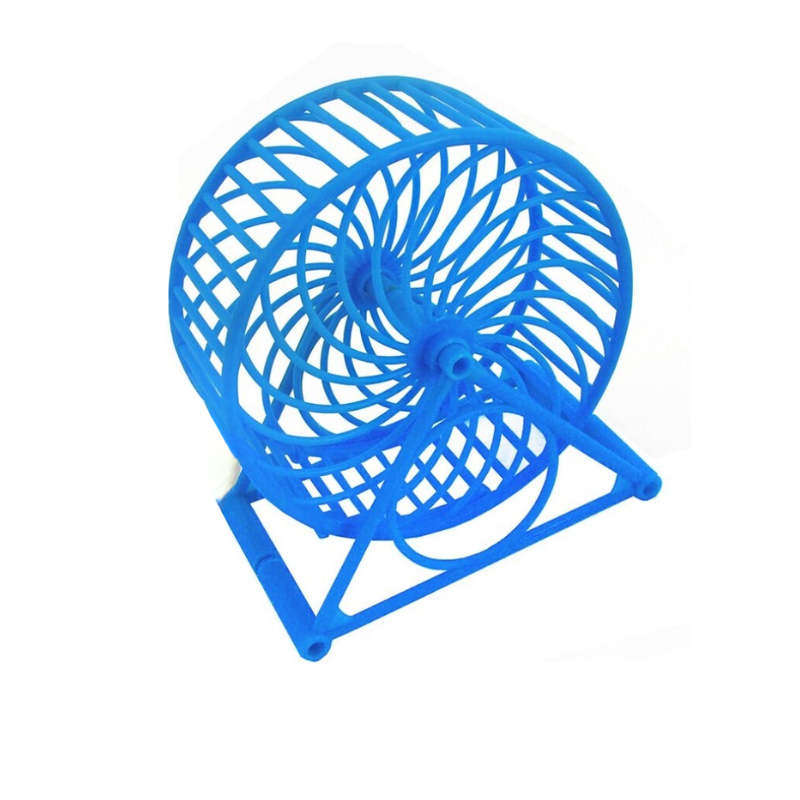 Rueda de ejercicio diseñada para hámsters y pequeños roedores, ideal para fomentar la actividad física diaria y prevenir el sedentarismo.
