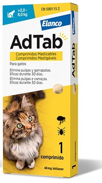 AdTab es el único comprimido para gatos disponible en tiendas frente a pulgas y garrapatas