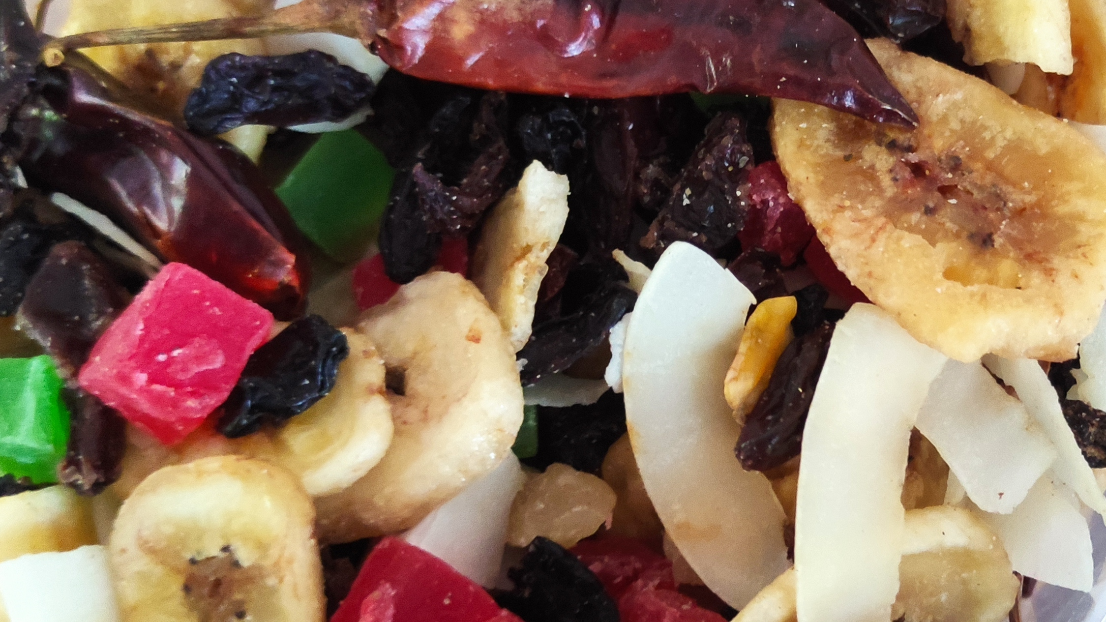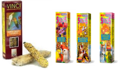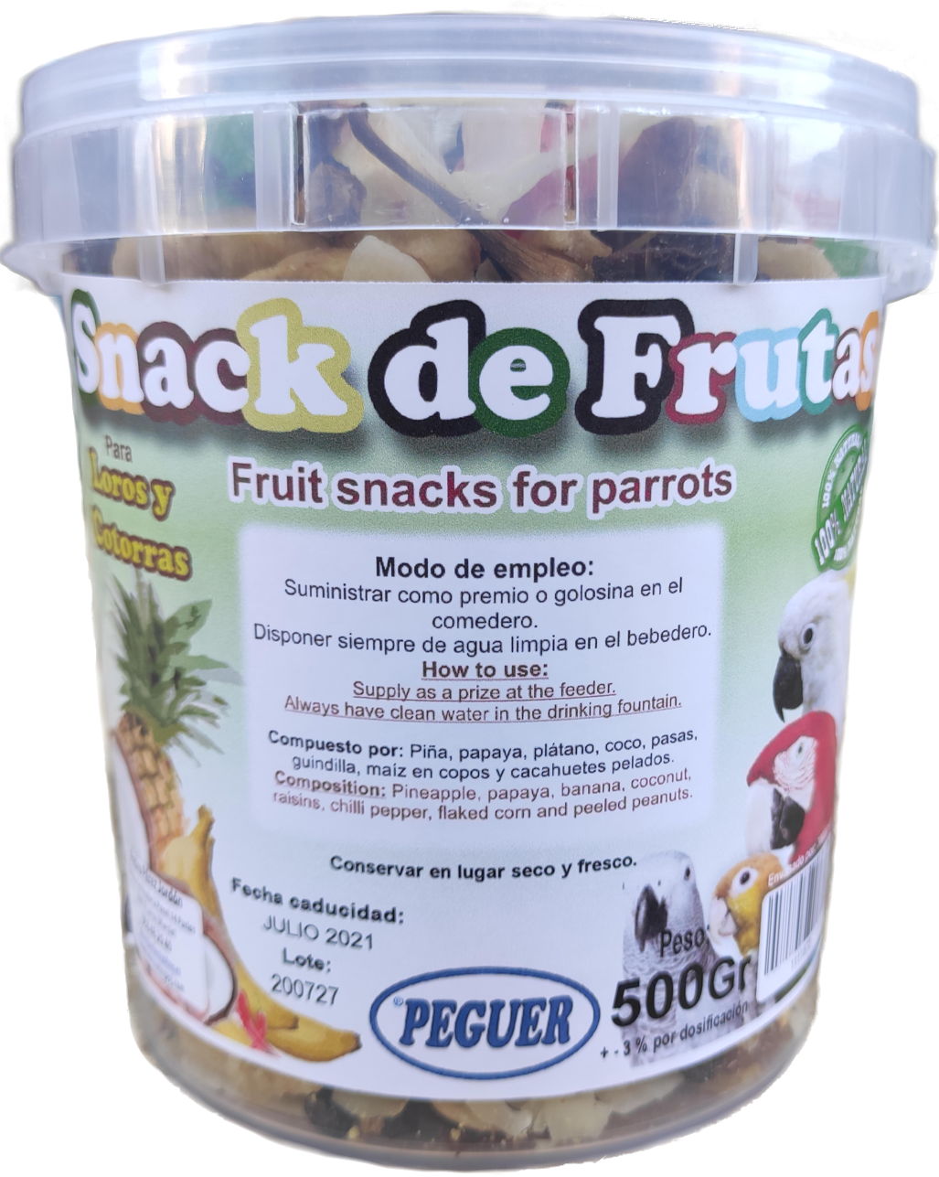 Snacks formado principalmente por fruta, para dar a nuestro loro o cotorra, como alimento complementario.
