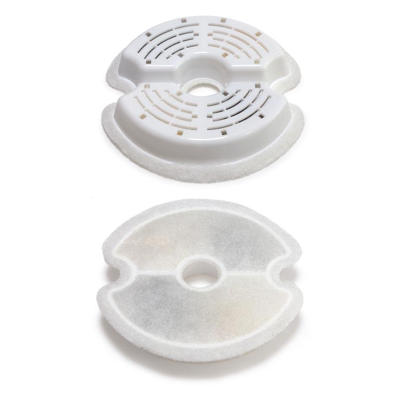 4 filtros de recambio para la fuente de agua Arquivet. Filtro cuádruple: algodón de alta densidad, cáscara de coco, carbón activado y resina de intercambio iónico. Se recomienda reemplazarlos regularmente cada 2 a 4 semanas.