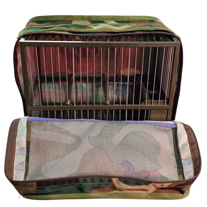 Funda para jaula de jilguero tamaño C-20 (grande), con ventana y rejilla en la parte frontal, y sistema de velcro para poder cerrarla.