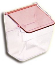 Comedero con tapa superior con apertura en color rosa, para colocar en la jaula.