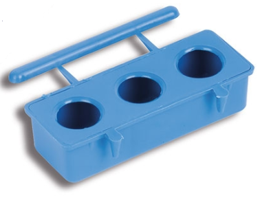 Comedero cria de 3 huecos para colgar en jaula. Cuenta con una barra de apoyo para el pájaro.