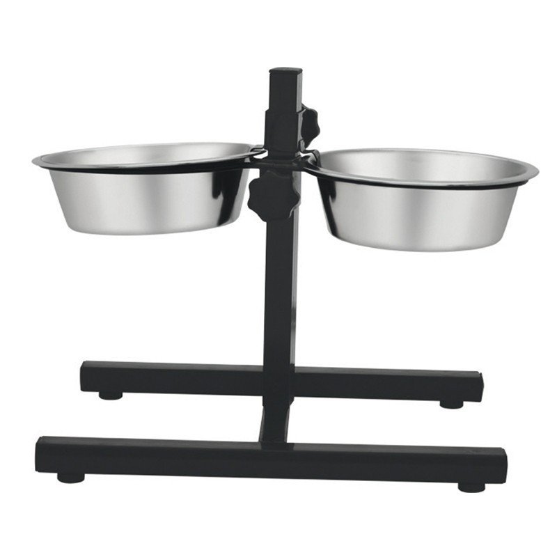 Comedero para perros de acero inoxidable con un soporte que da la opción de regular la altura para acomodarlo a la altura perfecta de tu mascota. El soporte también da estabilidad al comedero/bebedero para evitar que el perro pueda derramarlo por el suelo o que pueda ser volcado por accidentalmente.