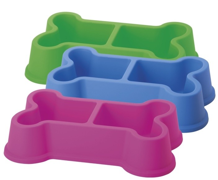 Comedero doble con forma de hueso.