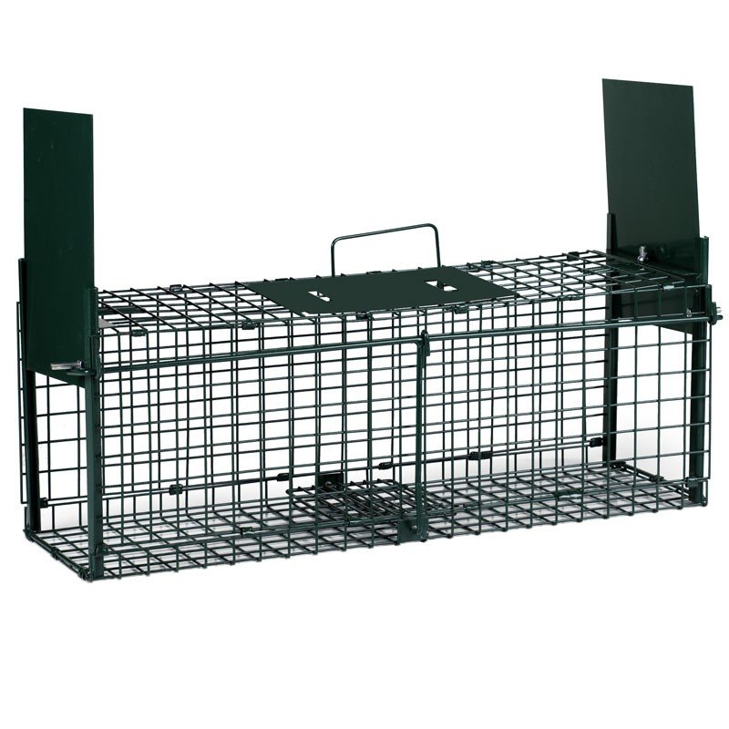 Jaula trampa roedores fabricada en malla electrosoldada de gran resistencia. Posee dos entradas que cierran automáticamente al pulsar el mecanismo del cebo en el interior dejando atrapado al animal sin importar desde donde acceda. Trampa ideal para ubicarla en pasos estrechos o accesos a túneles.