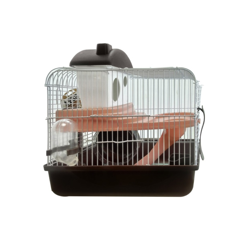 Su estructura resistente y funcional la hace ideal para hámsters y otros pequeños roedores, proporcionando un hábitat práctico y completo.