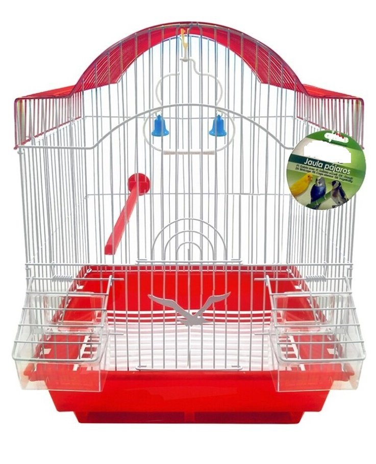 Jaula para pájaros de tamaño compacto (30x23x38 cm), ideal para aves pequeñas como canarios, periquitos o jilgueros. Fabricada en metal resistente con base plástica fácil de limpiar. Incluye comederos, perchas y bandeja extraíble para facilitar el mantenimiento. Diseño práctico y funcional para el hogar.