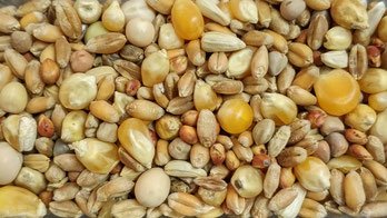 Trigo, maíz pequeño, sorgo rojo, guisantes, alazor, cañamón, yeros, alpiste y arroz con cáscara.