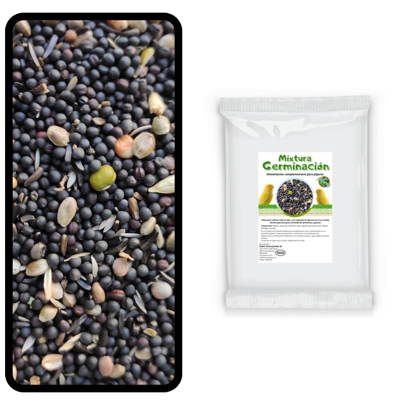 Mezcla de semillas para realizar una germinación para nuestas aves.