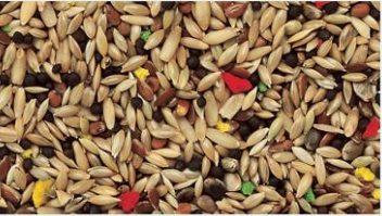 Alpiste, nabina, avena pelada, linaza, corrector vitamínico, rábano y cañamón.
