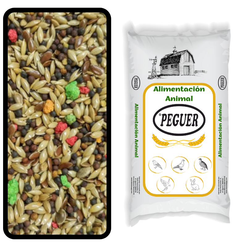Alpiste, nabina, linaza, corrector vitamínico, cañamón y rábano.