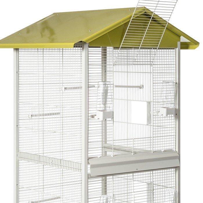 Pajarera metálica perfecta para todo tipo de pájaros, con una separación entre la parte superior y inferior. Fabricado en España, con pintura epoxi sin plomo, no tóxico. Jaula con bandeja extraíble, fácil de limpiar.