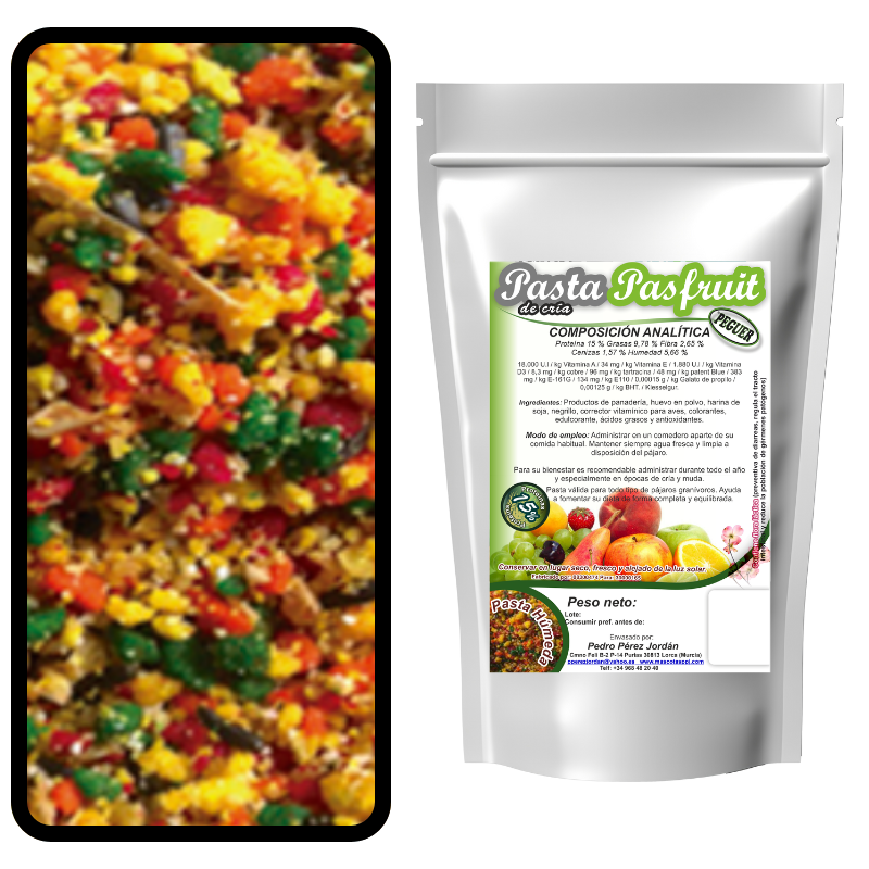 Pasta de cría de frutas para todo tipo de aves.