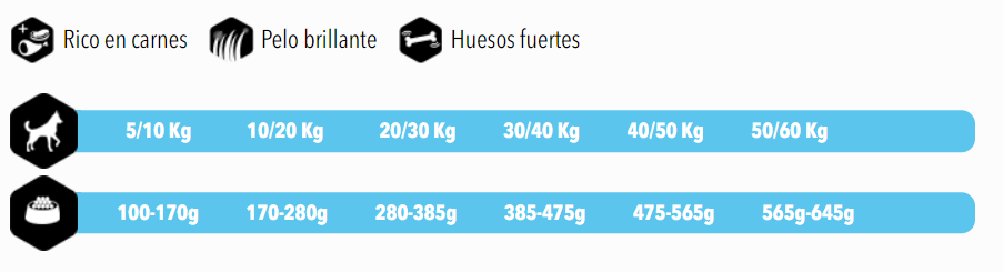 Composición: Proteína de carne deshidratada, Cereales, Subproductos de origen vegetal (pulpa de remolacha mín. 2%), aceites y grasas (grasa de ave mín. 5%), Sustancias minerales.