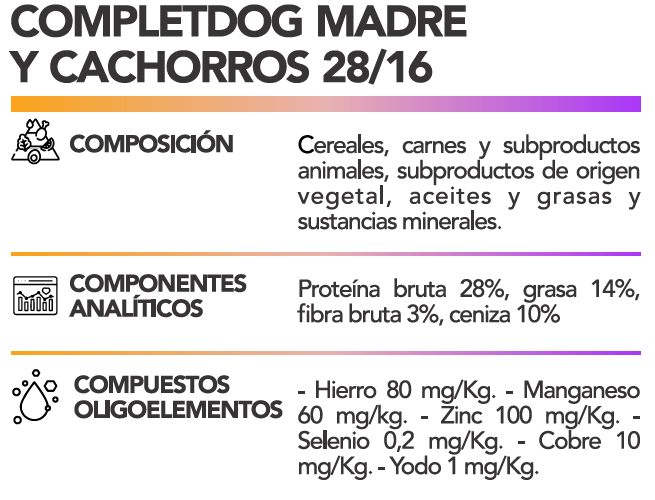 PIENSO CACHORROS PUPPY Y MADRES COMPLETDOG 28/16 20 KG