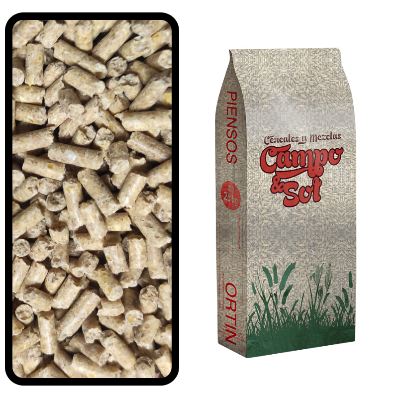 Maíz, Harina de extracción de Soja tostada, Carbonato de cálcio, Derivados de maíz, Salvado de Trigo, Oleínas, Fosfato Monocálcico, Cloruro de Sodio.