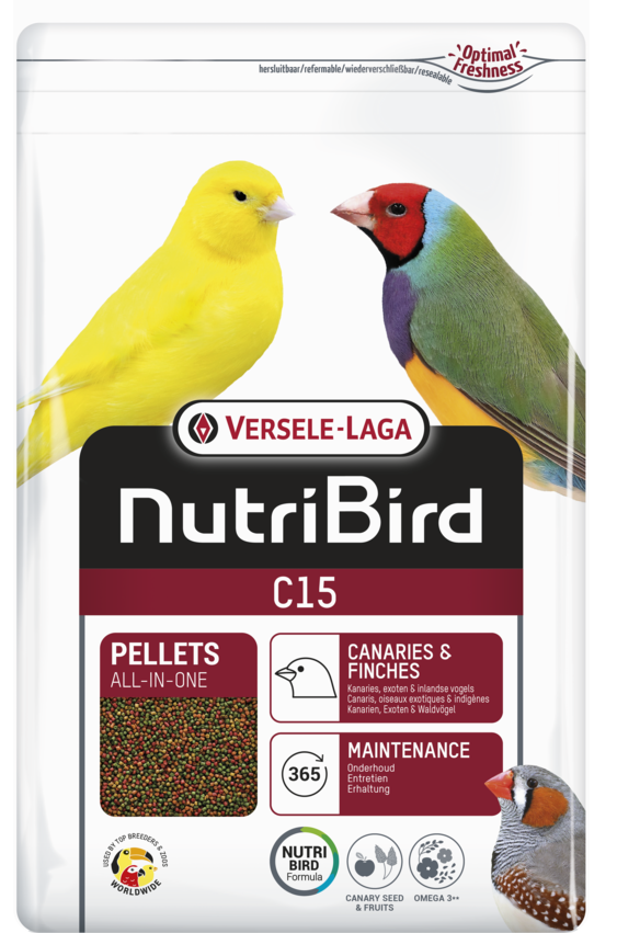 NutriBird C15 es un pienso de mantenimiento completo y equilibrado para canarios, pájaros exóticos y autóctonos.