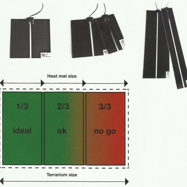 Las mantas térmicas Rep Tech emiten una radiación infrarroja, por lo que son ideales como segunda fuente de calor (zona cálida y cómoda durante la noche) o como fuente de calor principal en terrarios pequeños y racks. No subirán la temperatura de manera significativa en terrarios grandes o bien ventilados.
