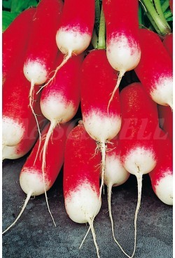 Variedad de ciclo temprano para mercado, con desarollo corto de planta. De raíz cilíndrica, de extrremidad roma, color rojo con la punta blanca y de sabor suave, poco picante.