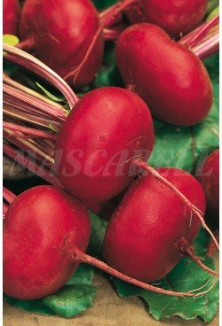 Variedad de raíz redonda aplastada. Destaca por su precocidad, carne apretada de excelente sabor y pigmentación sanguínea. Le perjudican excesos de humedad.