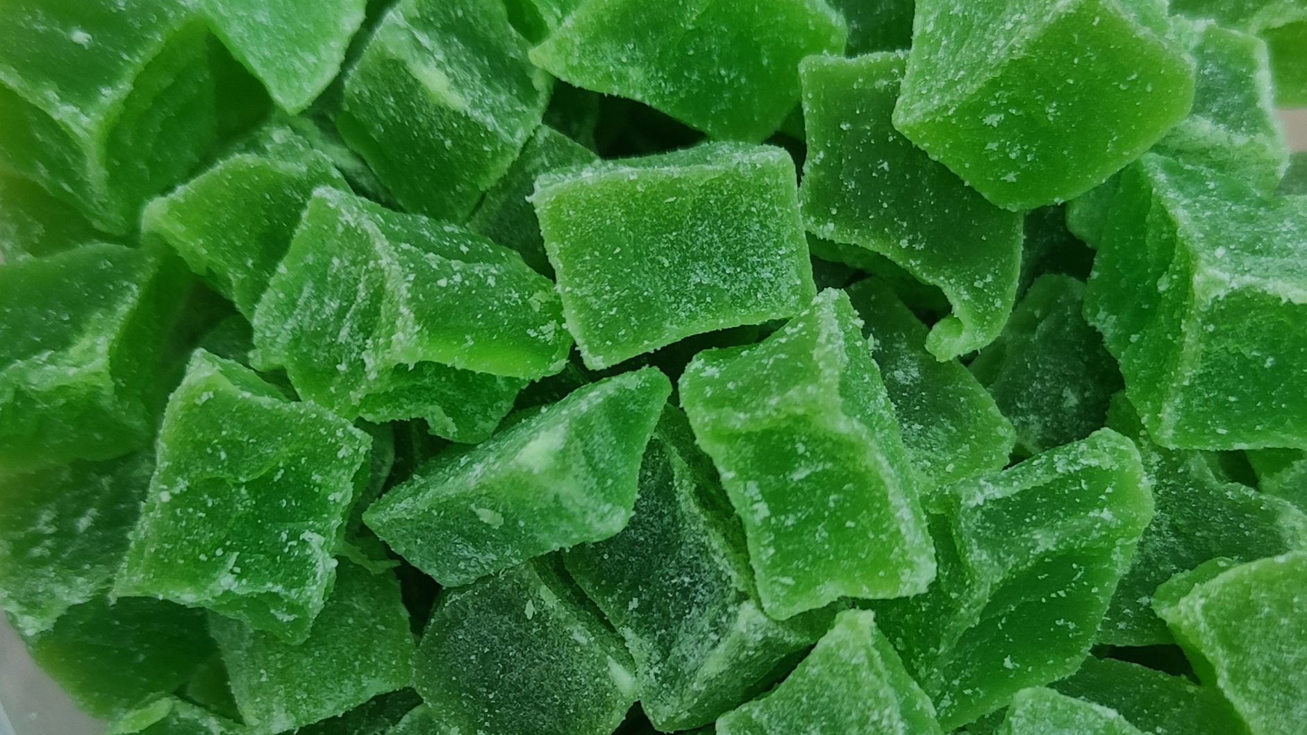 Piña seca cortada en dados, una fruta dulce muy apetecible para los loros como complemento o golosina en su dieta.