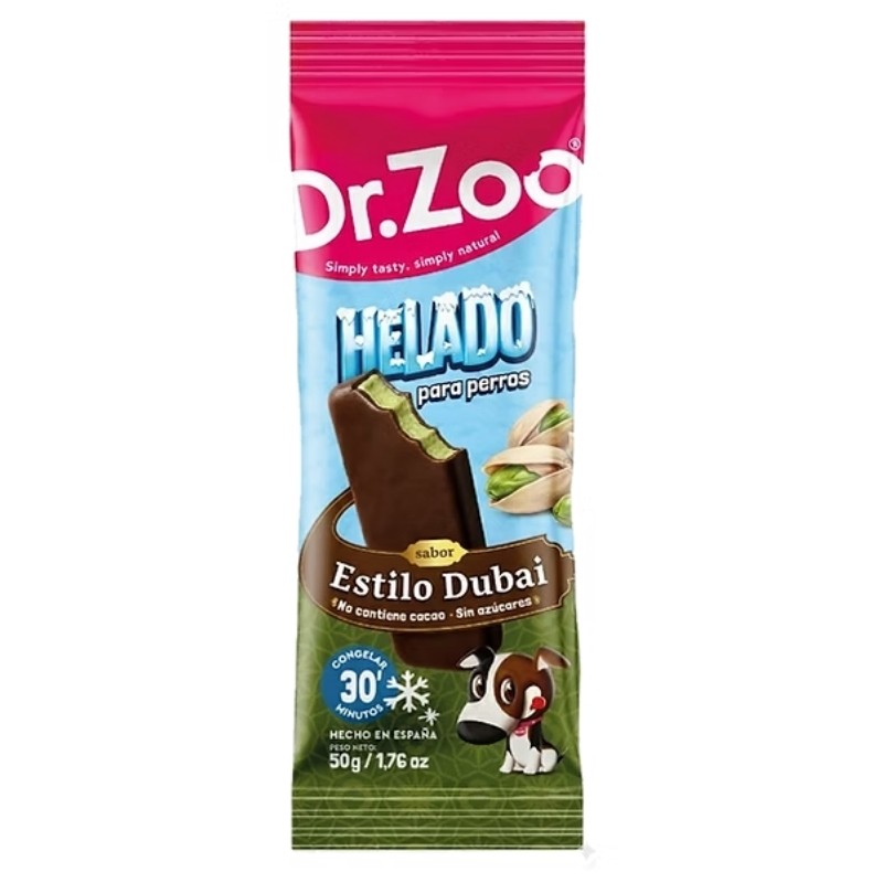 Descubre el helado sabor chocolate Dubai de DR ZOO, una novedad exclusiva pensada para ofrecer un momento de disfrute refrescante y diferente. Con un formato práctico, está elaborado con ingredientes seleccionados y diseñado para aportar un sabor intenso tipo chocolate sin azúcares añadidos y formulado específicamente para el consumo seguro en mascotas.