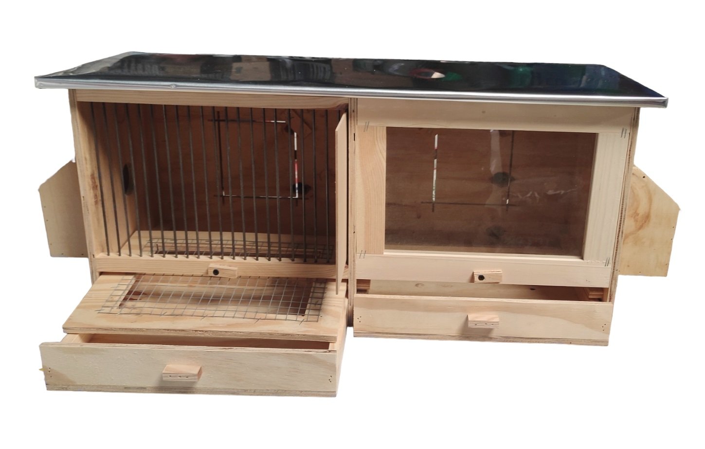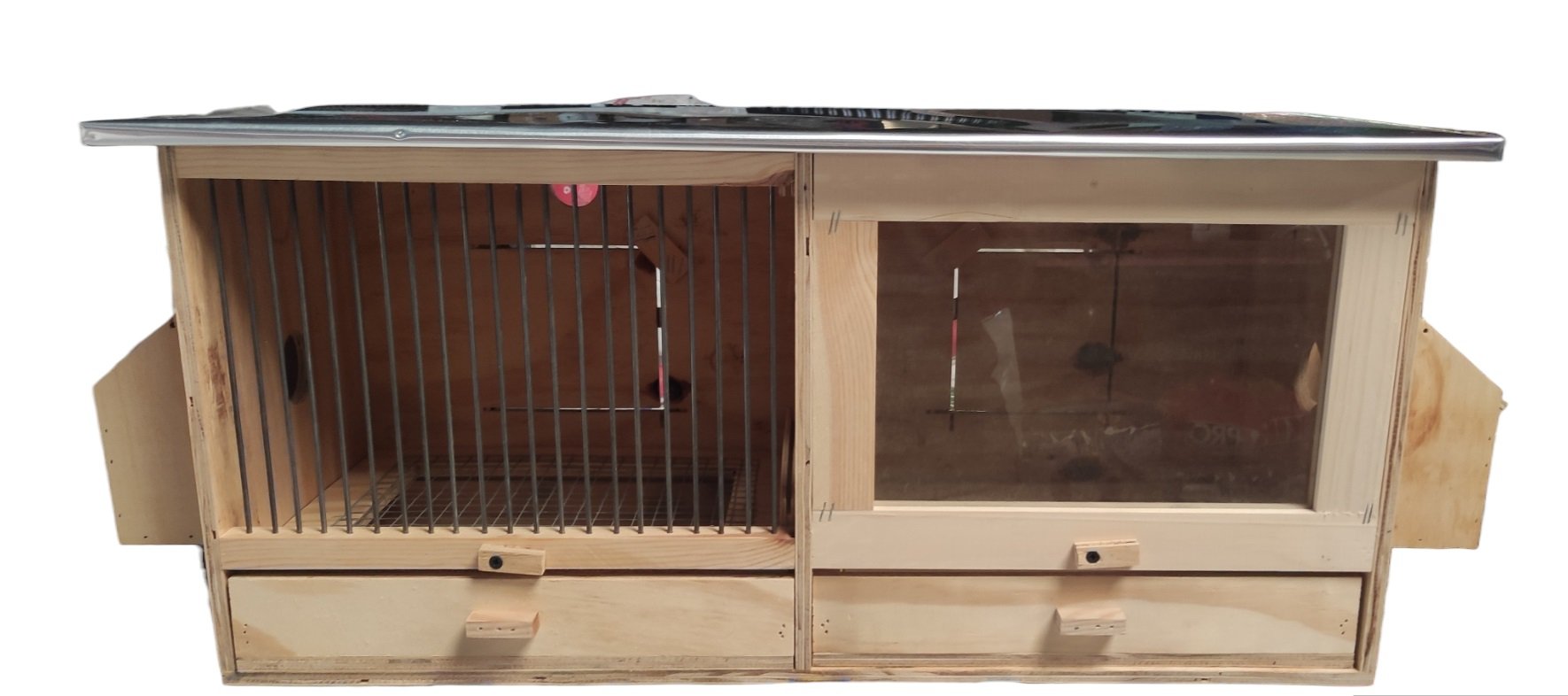 Dispone de 2 huecos comunicables, al quitar el separador central, y así puede acceder la perdiz al arenero de cristal.