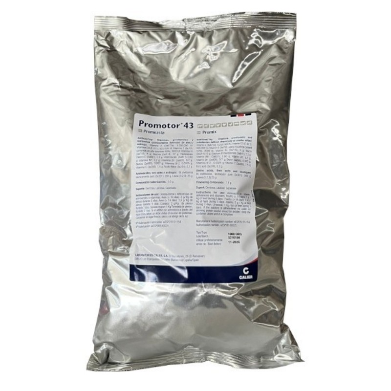 El Promotor 43 en polvo es un suplemento nutricional especialmente formulado para aves, diseñado para mejorar su desarrollo, vitalidad y rendimiento. Su composición aporta nutrientes esenciales que favorecen el crecimiento saludable, fortalecen el organismo y ayudan a mantener a las aves en óptimas condiciones.Gracias a su formato en polvo de fácil mezcla, puede añadirse cómodamente al alimento o al agua de bebida, permitiendo una administración sencilla y una rápida asimilación por parte de las aves.